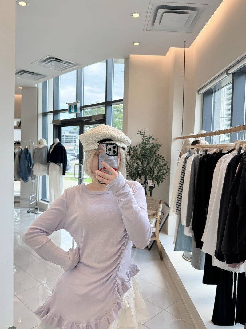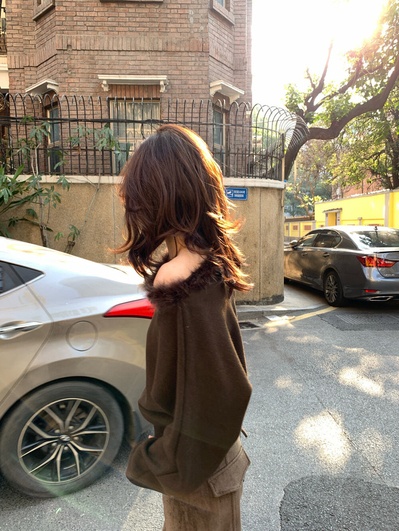 Slope shoulder fur sweater