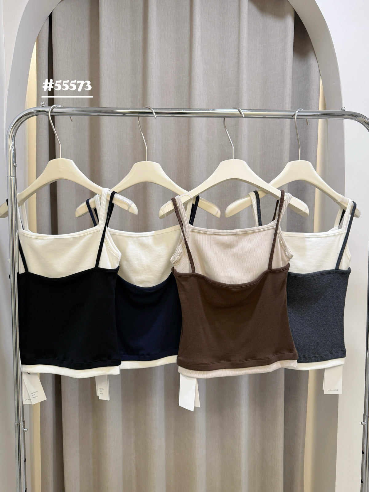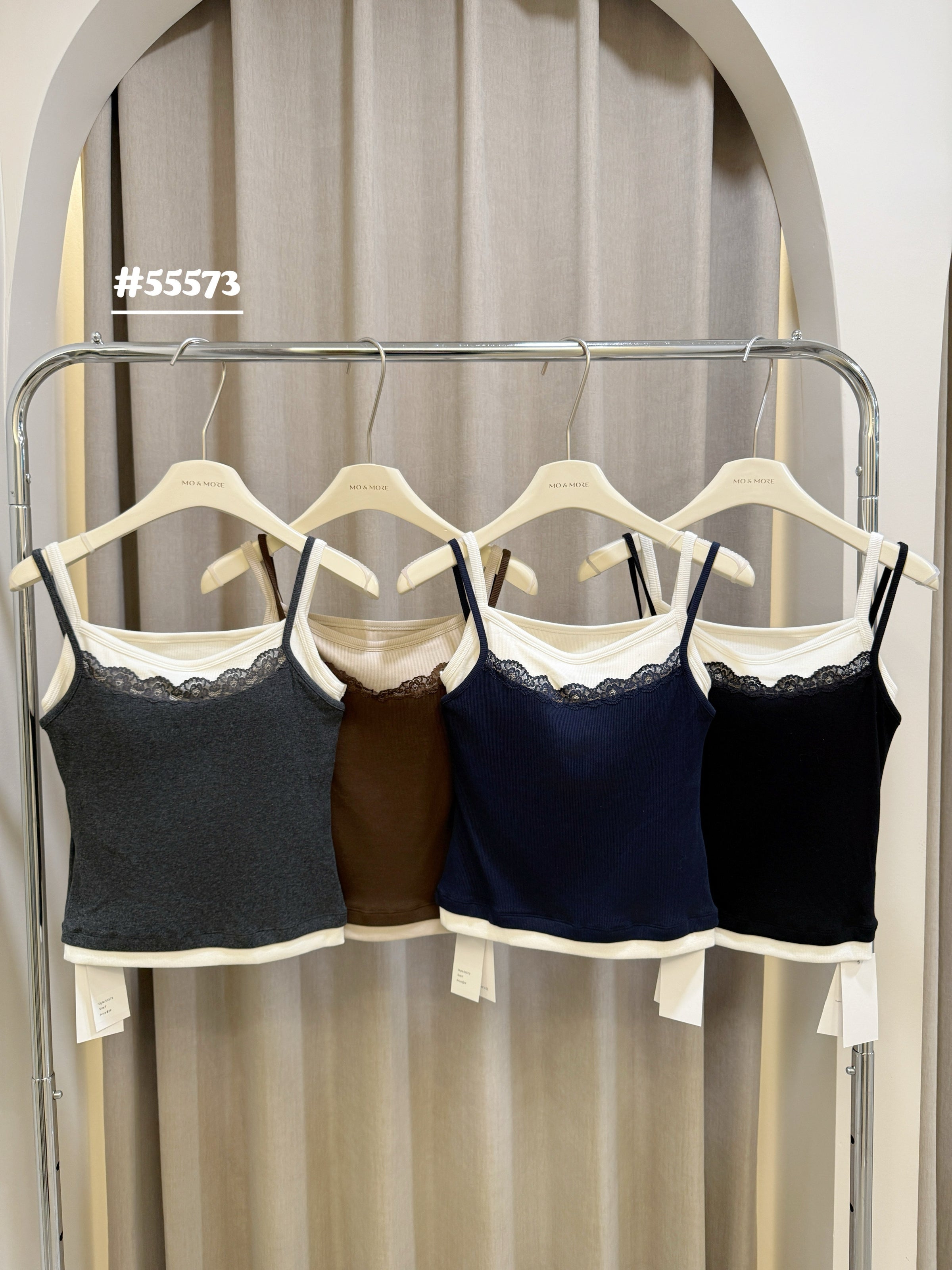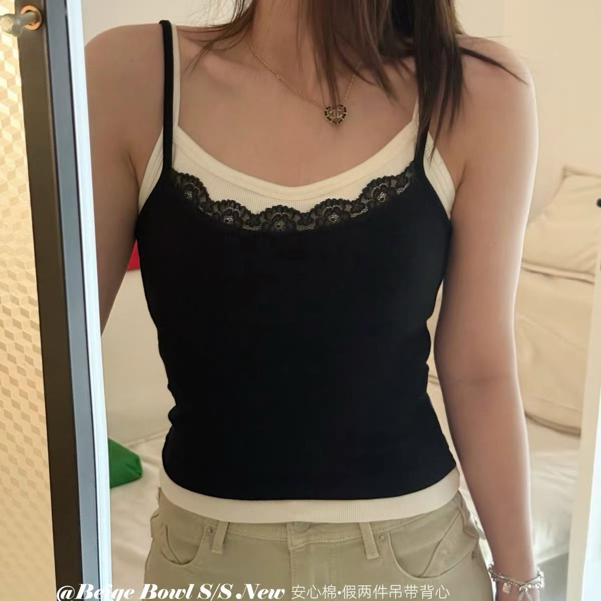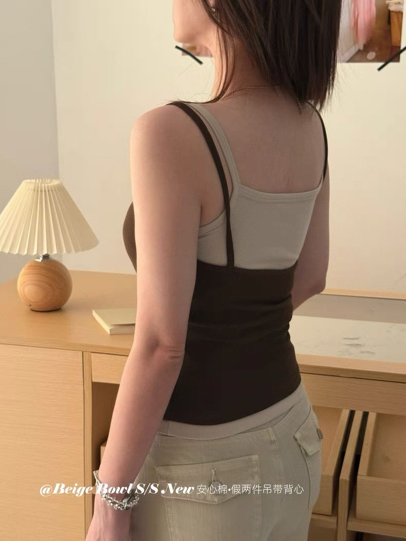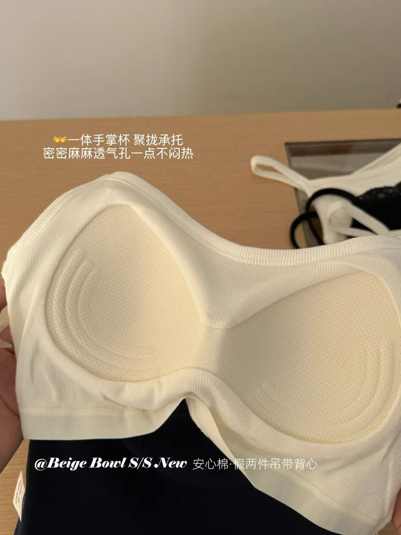 Slim strap fake 2-piec lace tank top