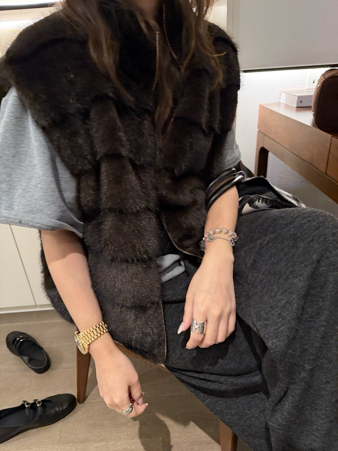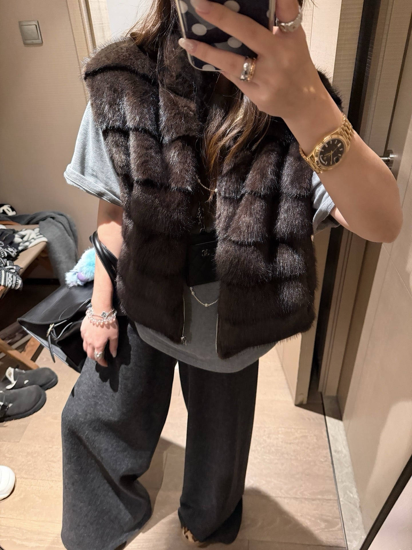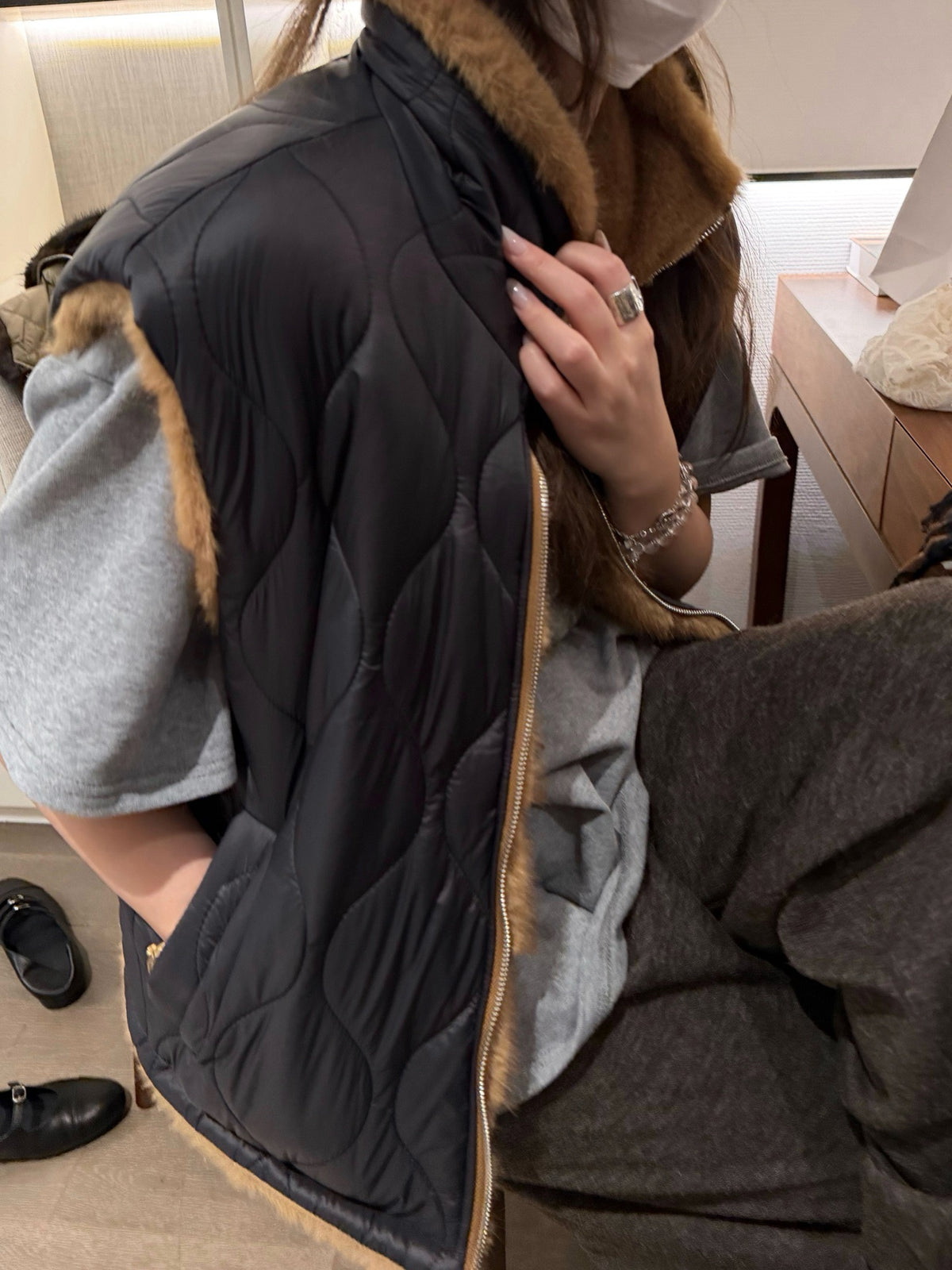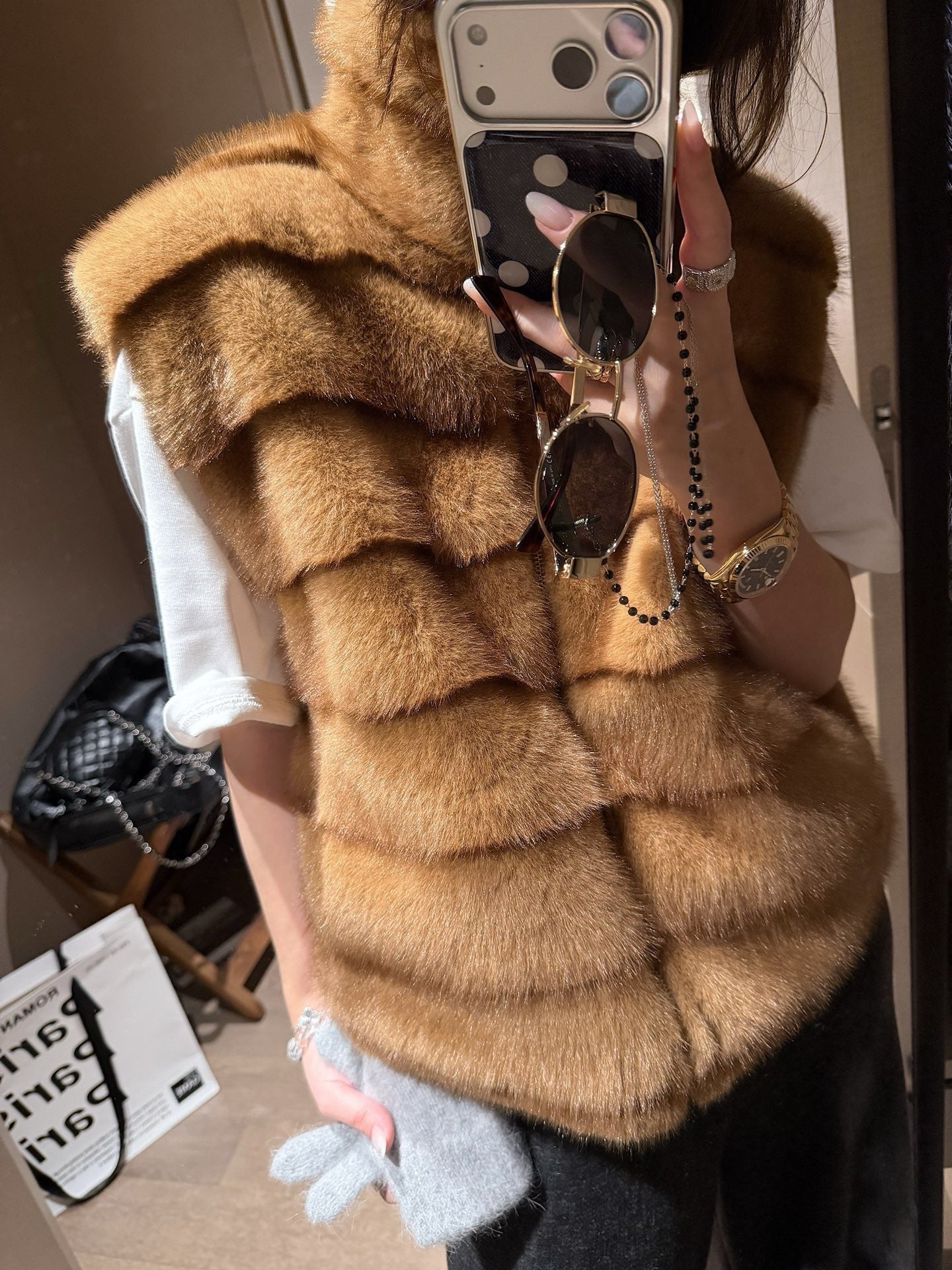 Faux mink fur reversible stripe vest