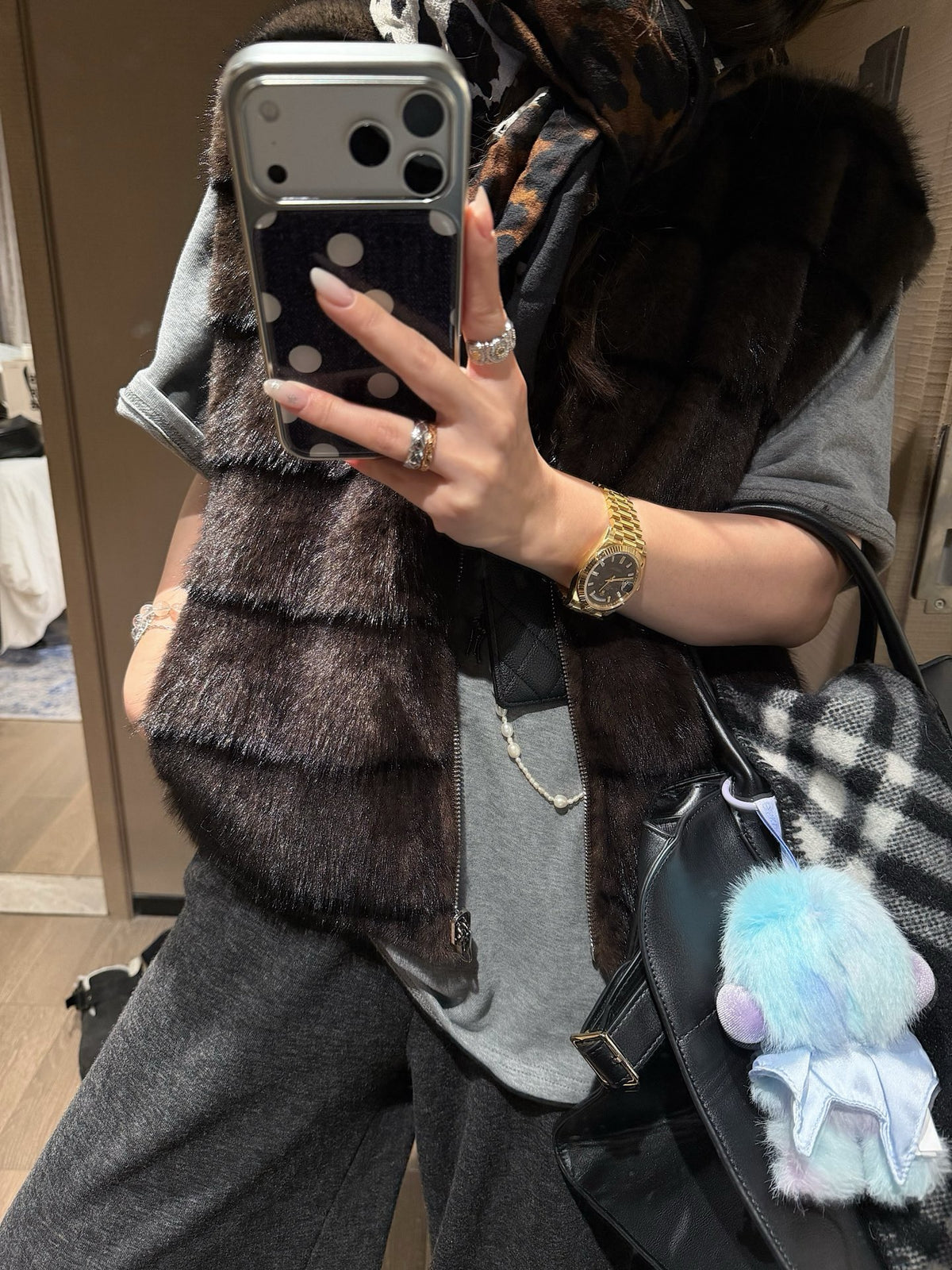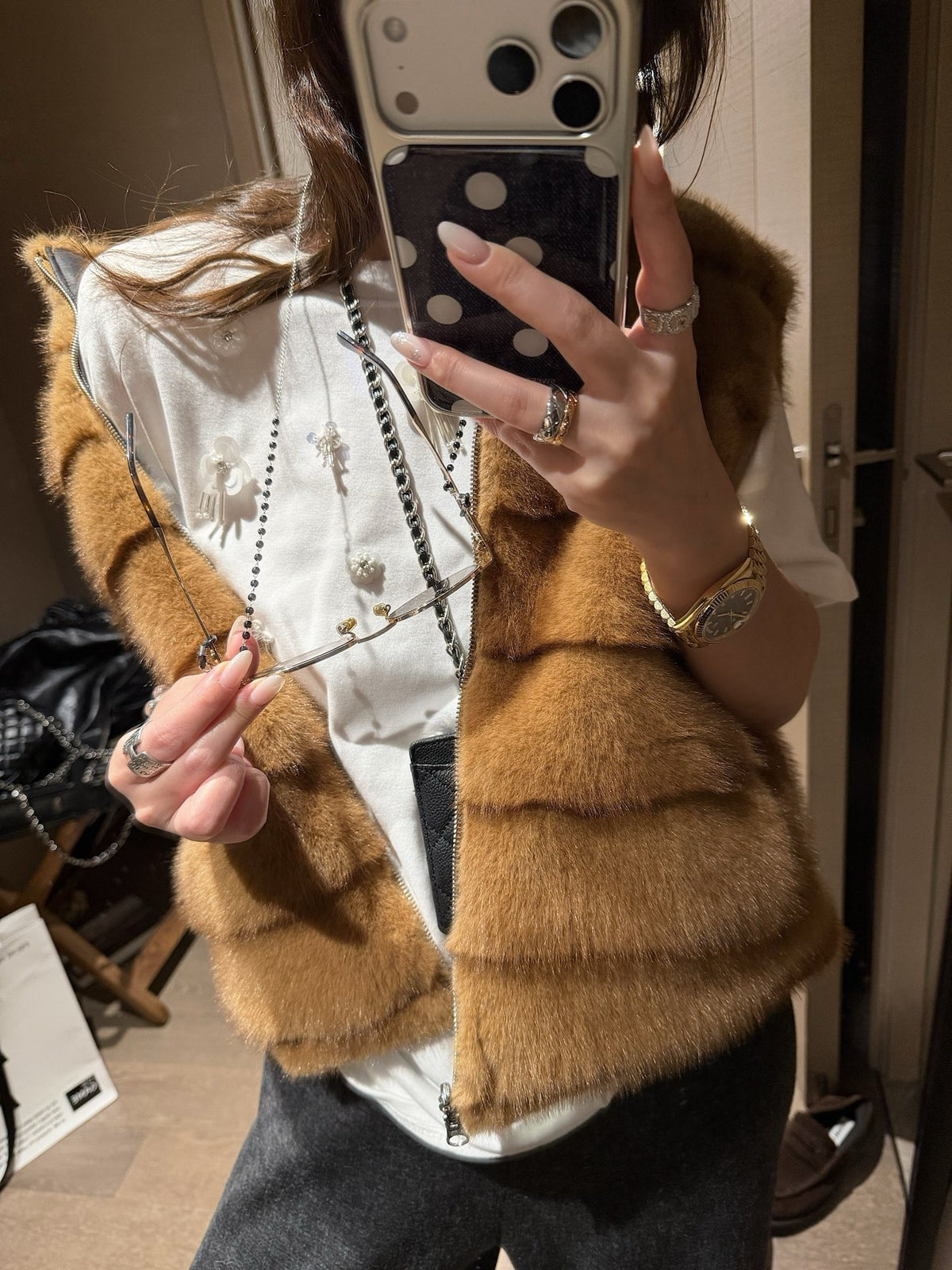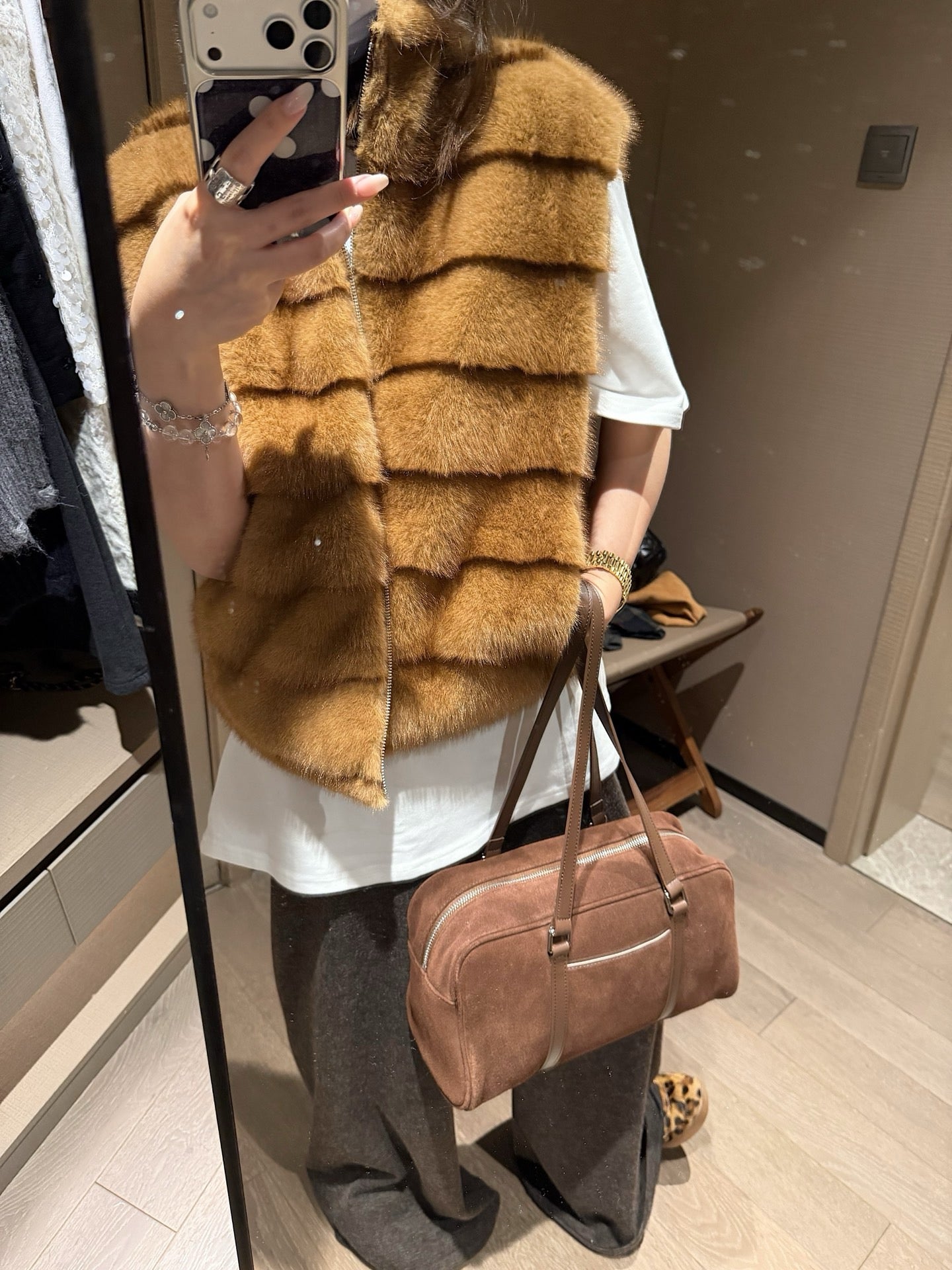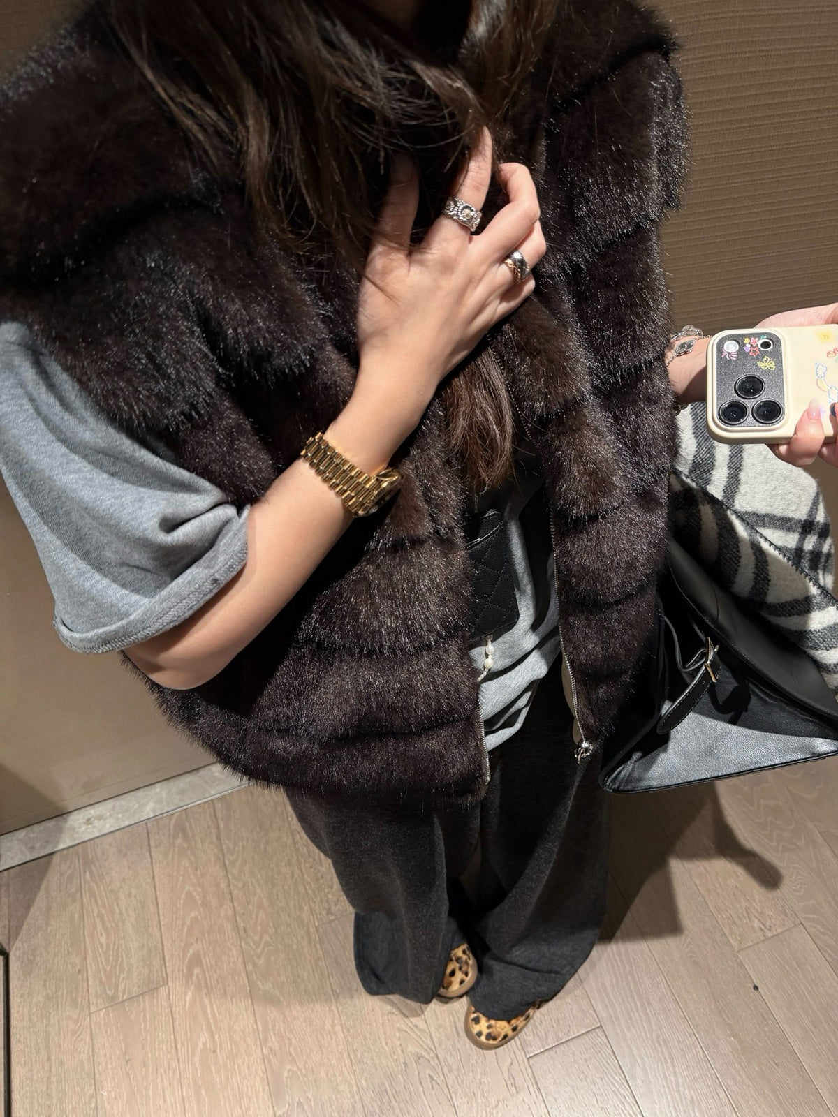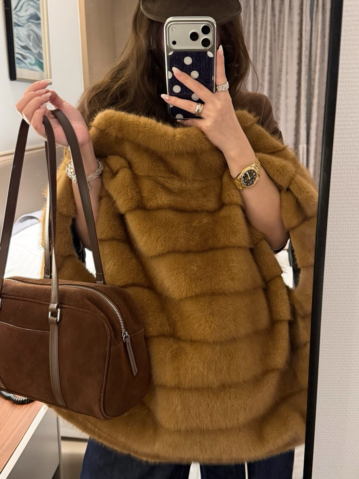 Faux mink fur reversible stripe vest