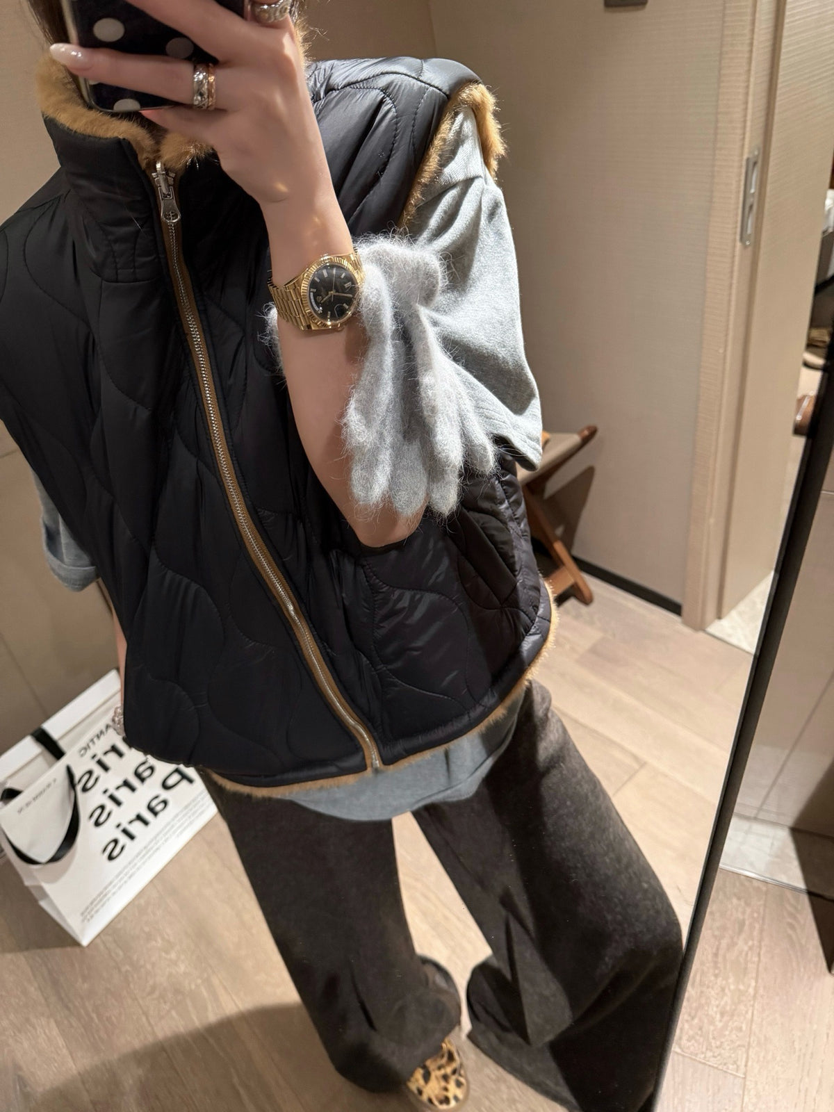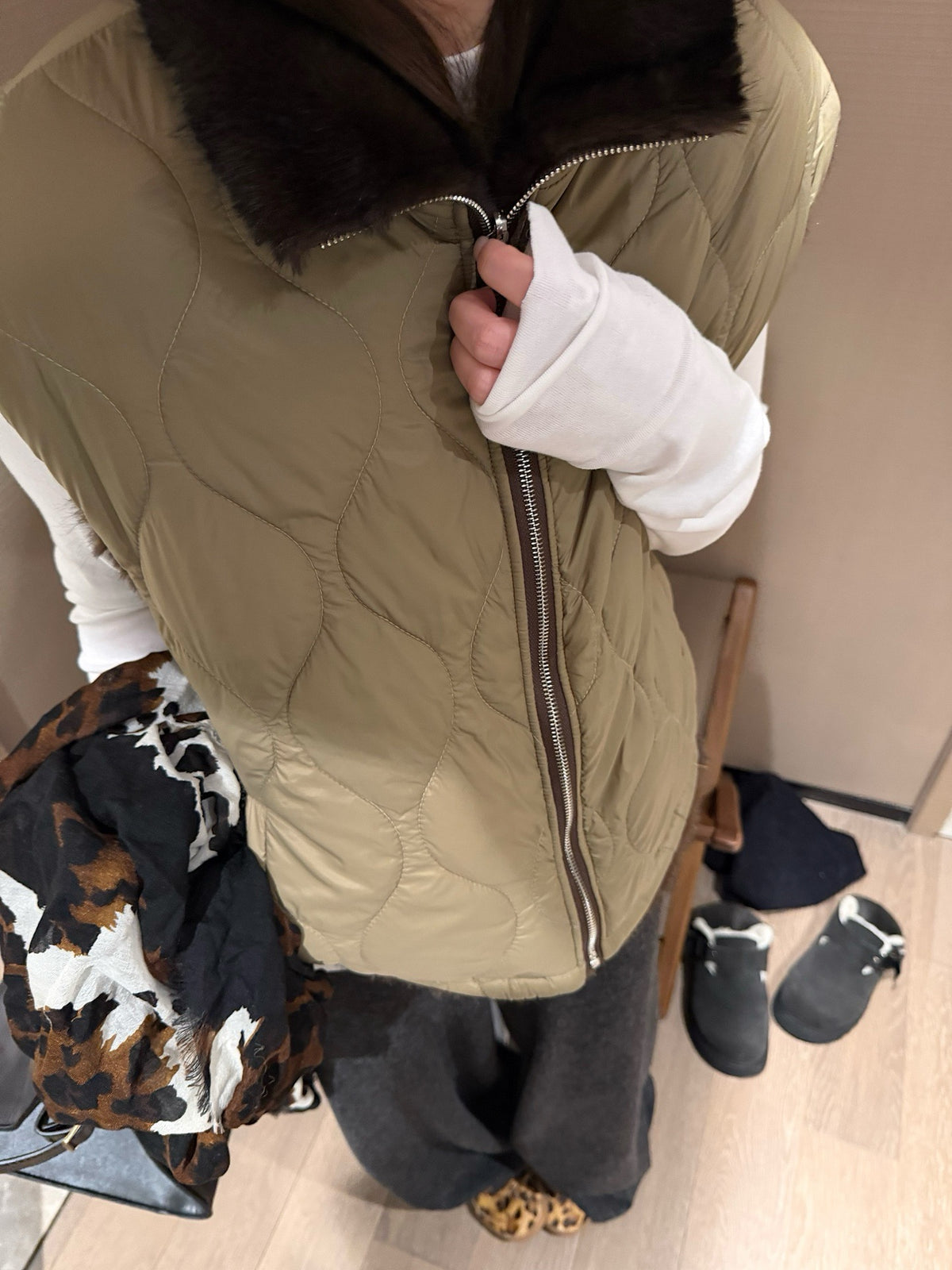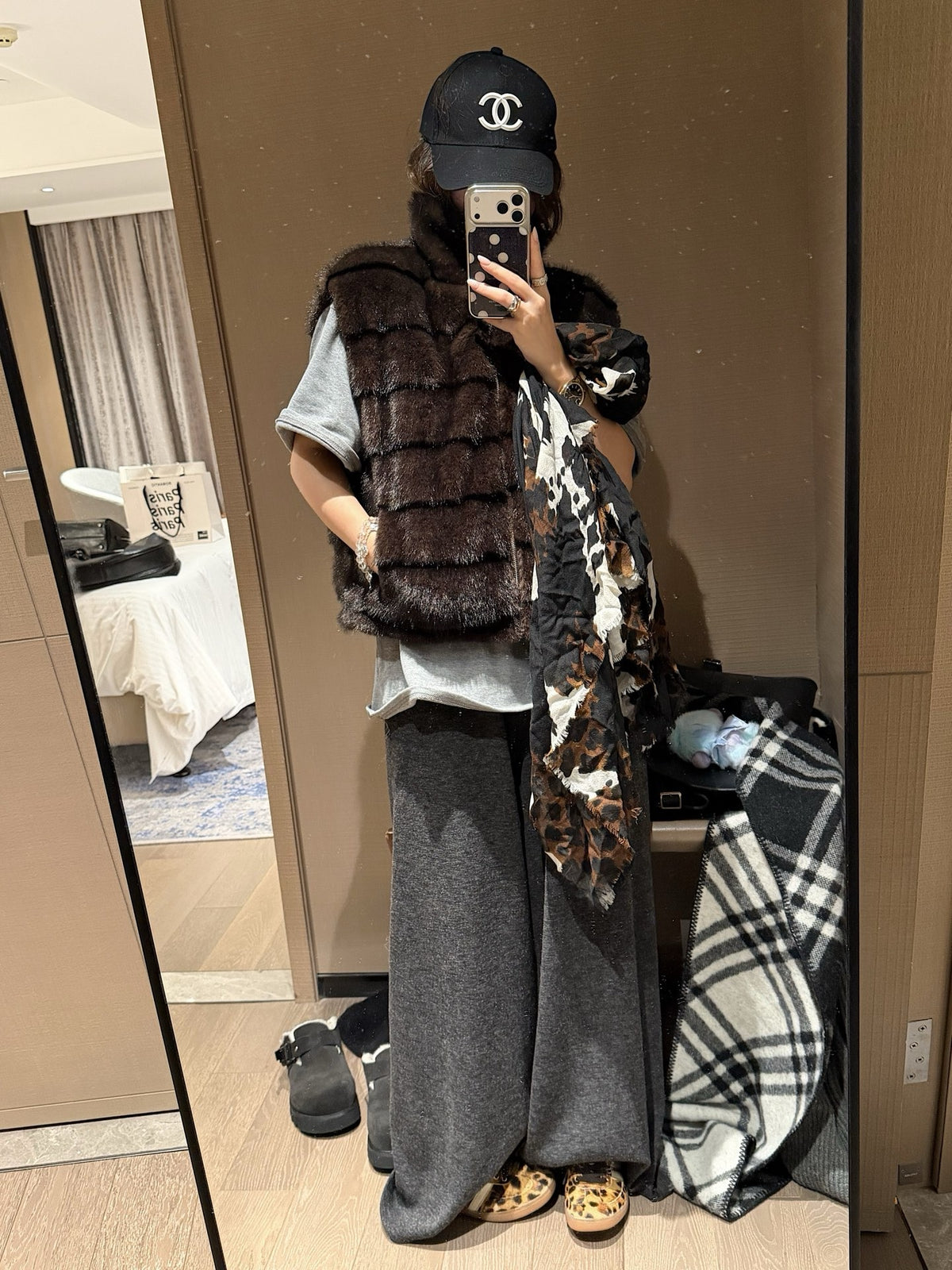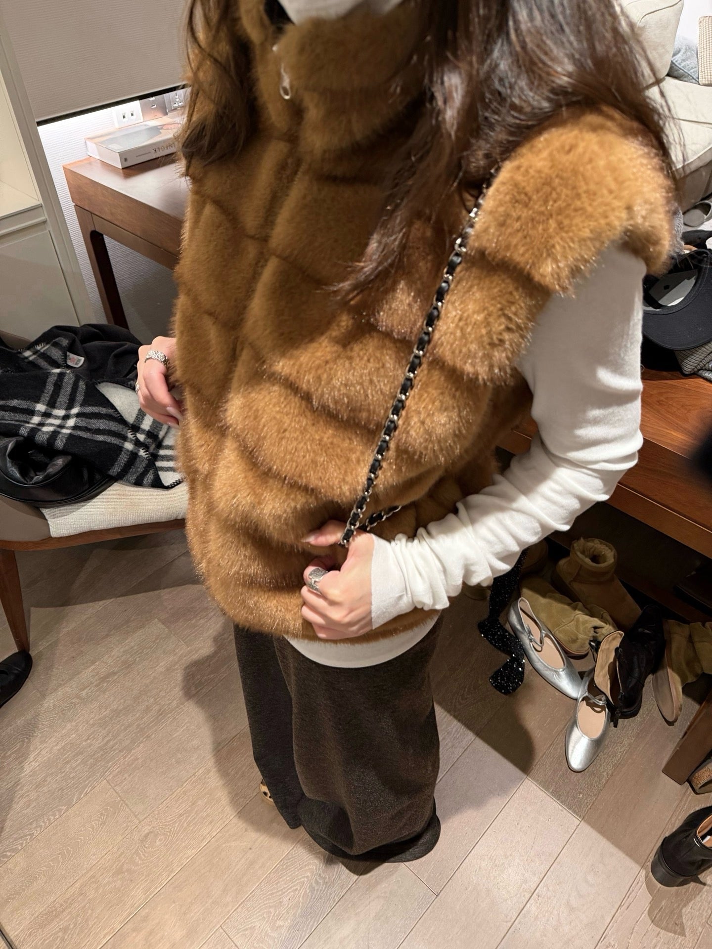 Faux mink fur reversible stripe vest
