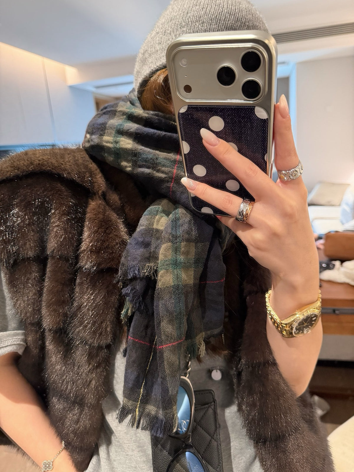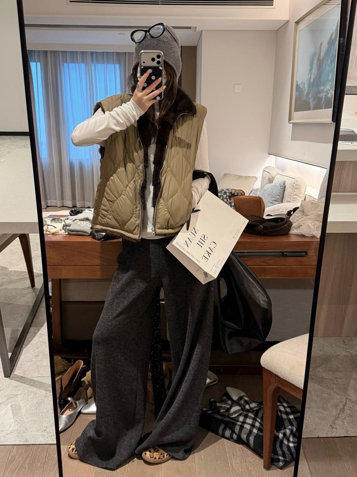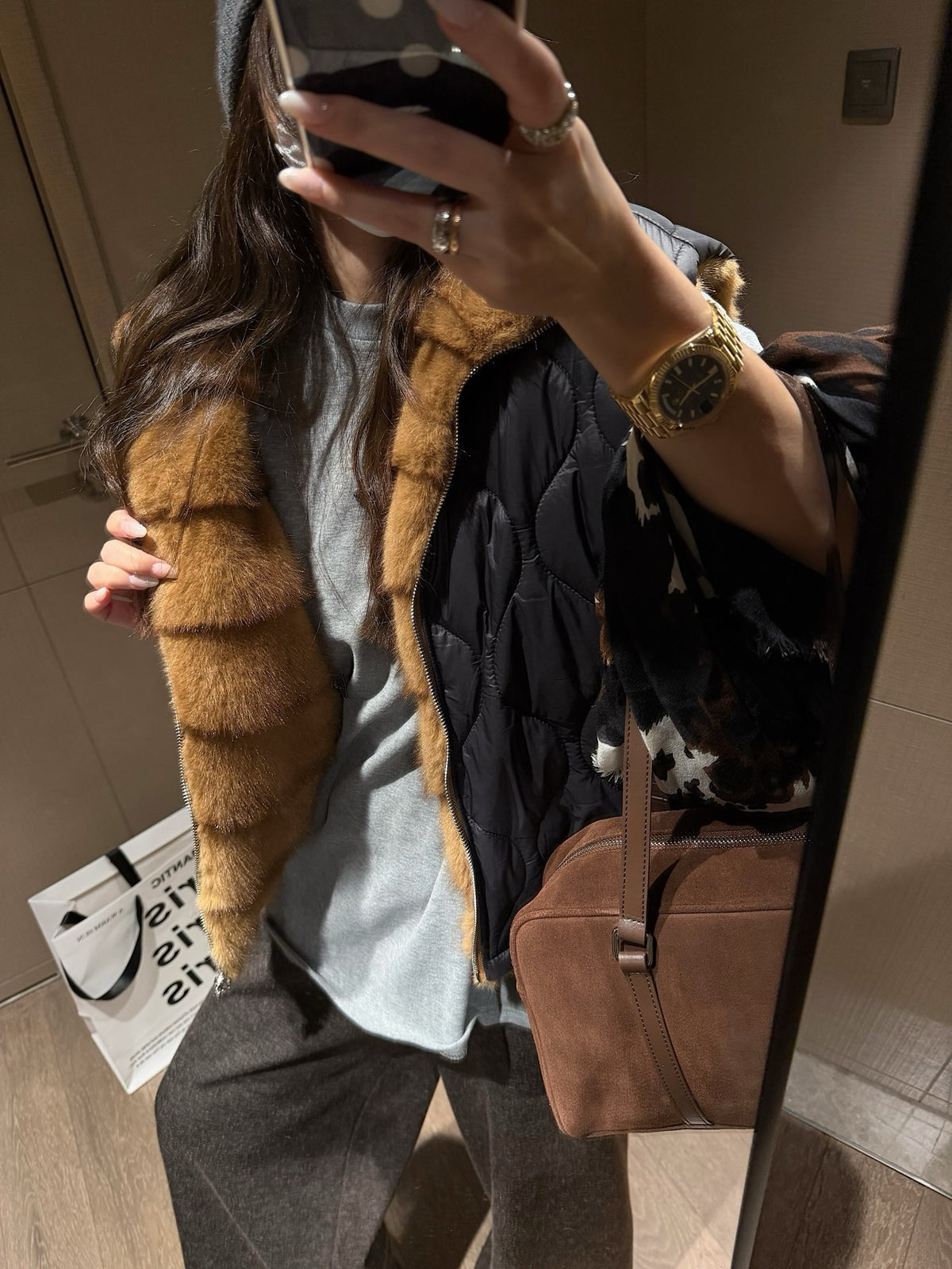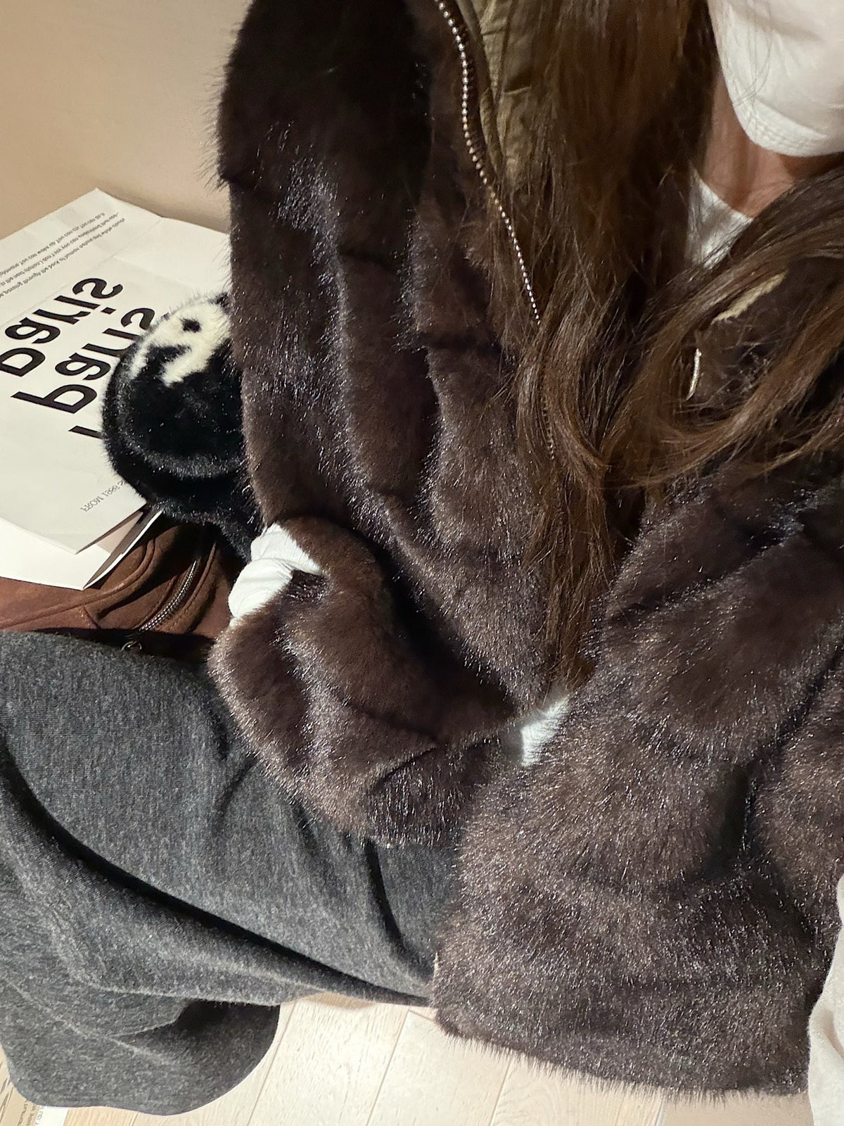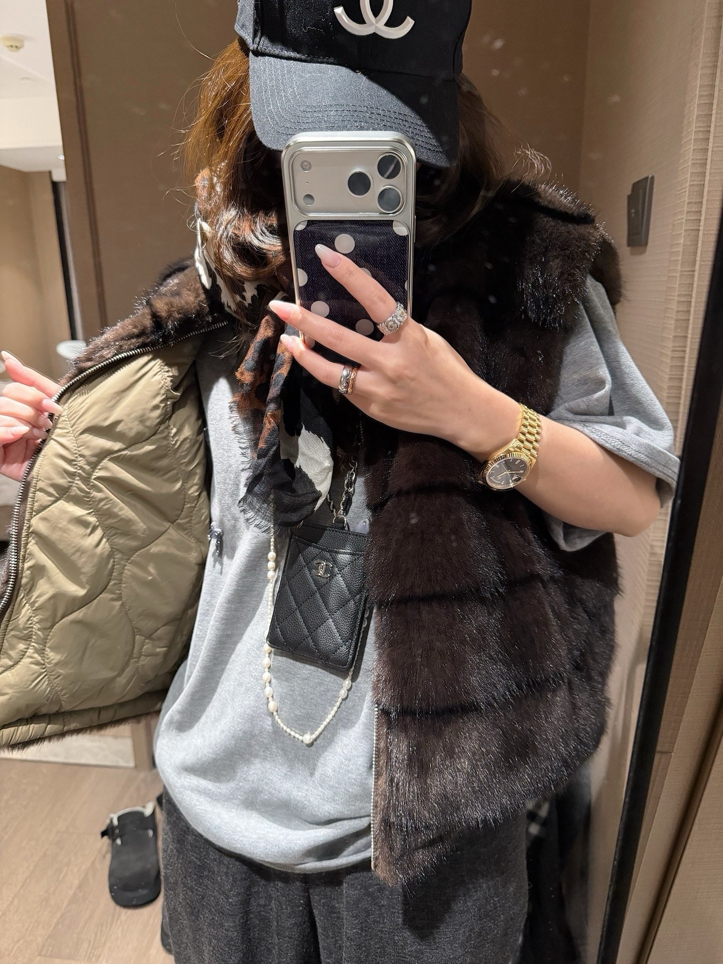 Faux mink fur reversible stripe vest
