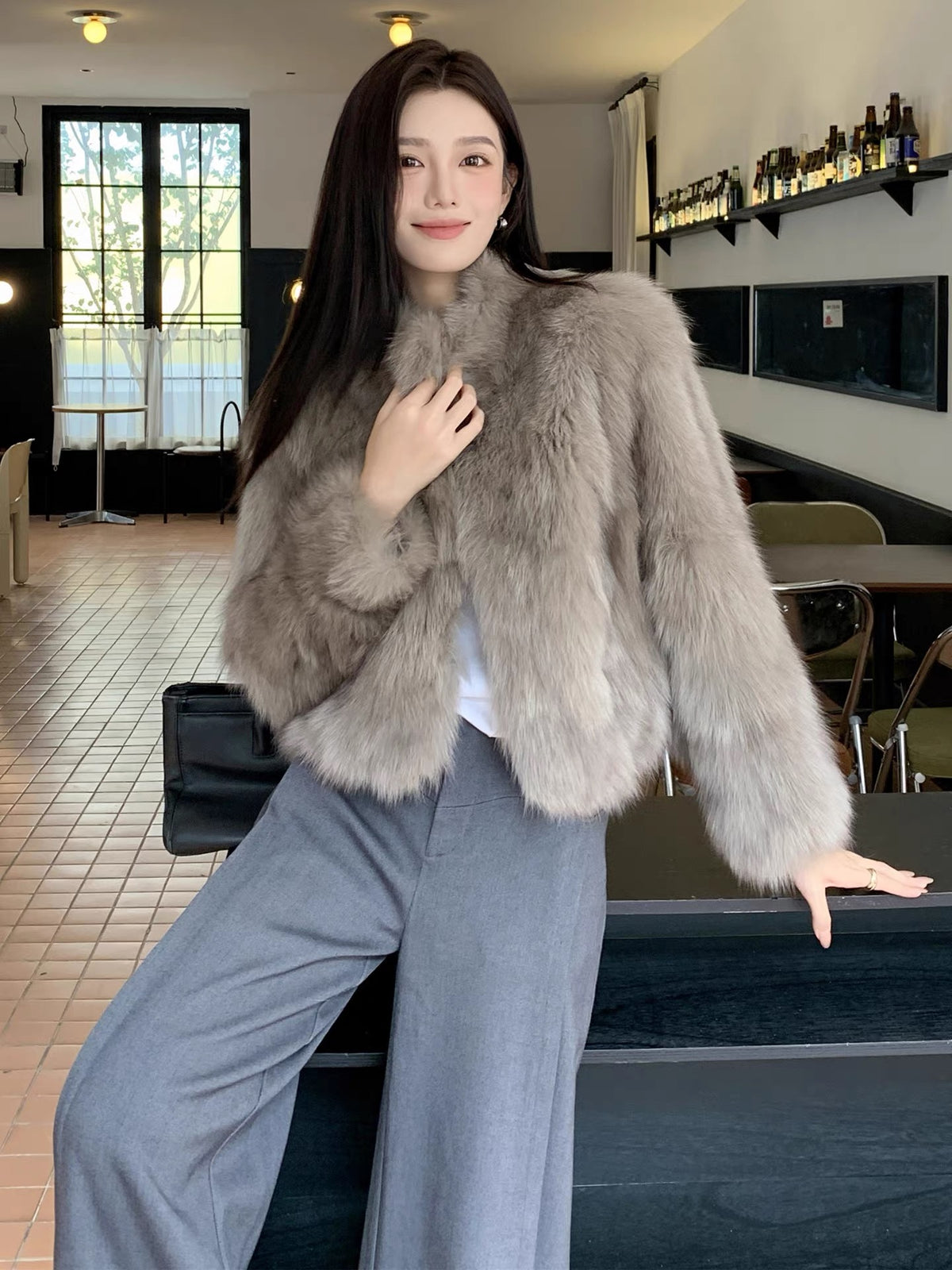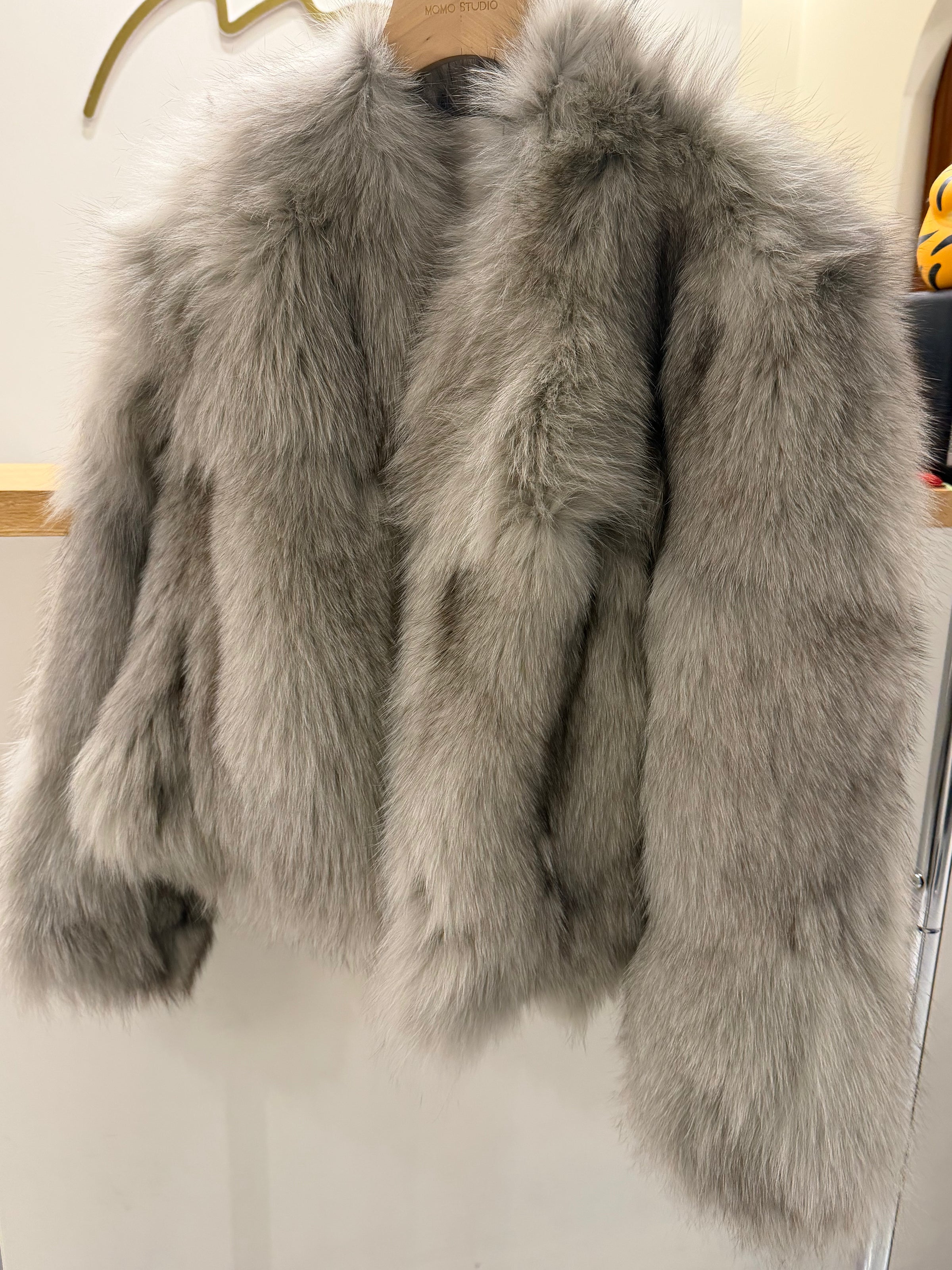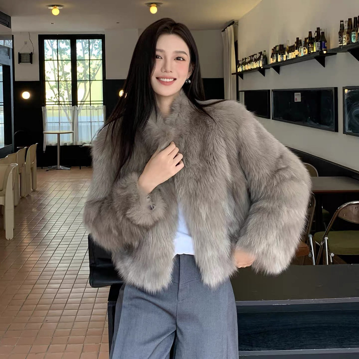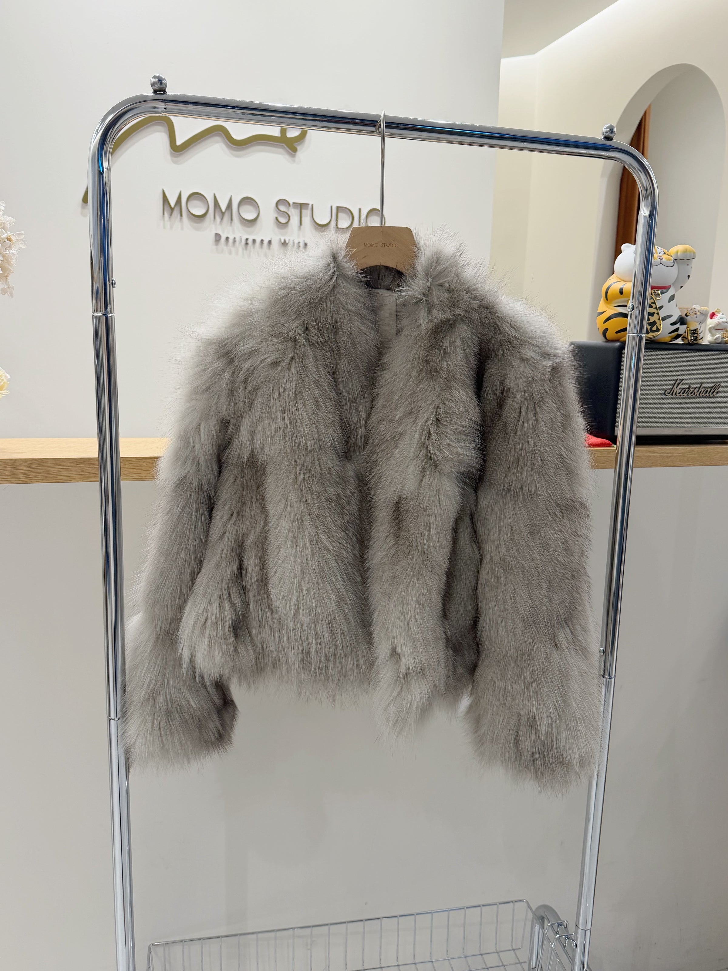 Double-Tone Dip-Dyed Stand Collar Fox Fur Jacket