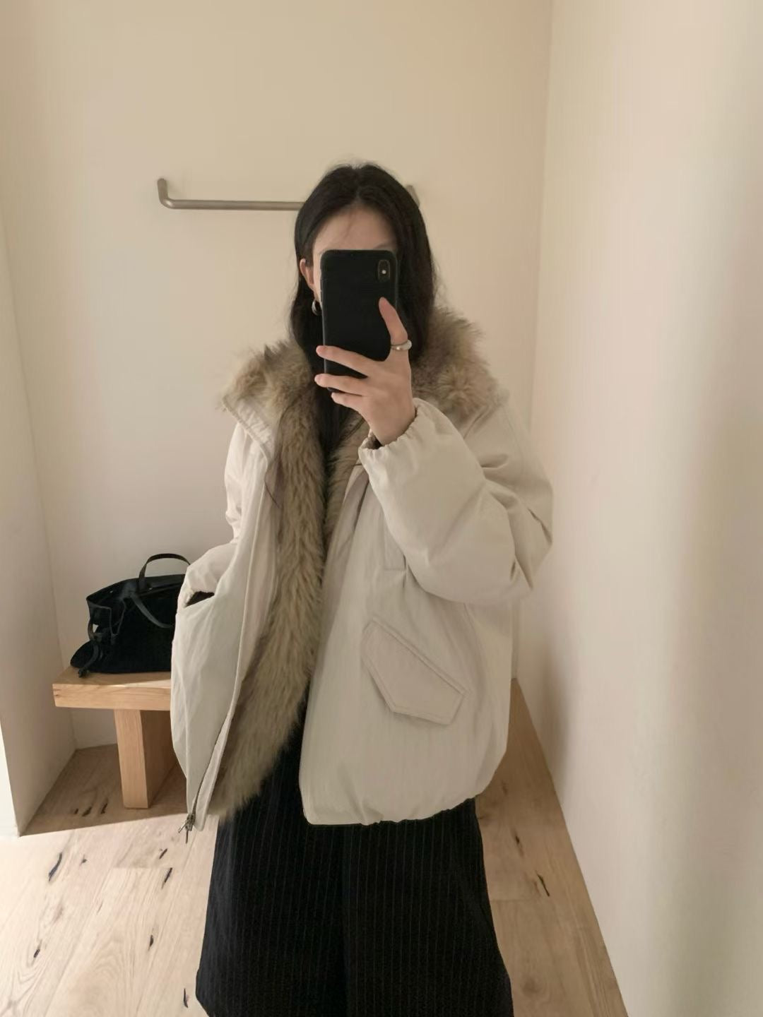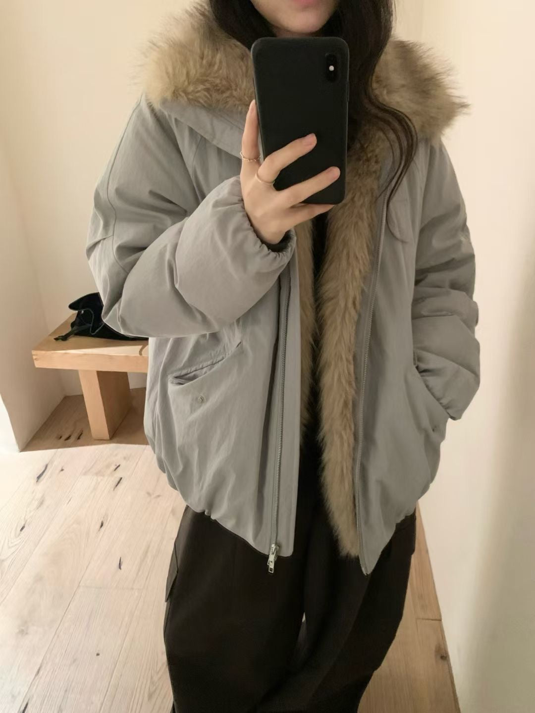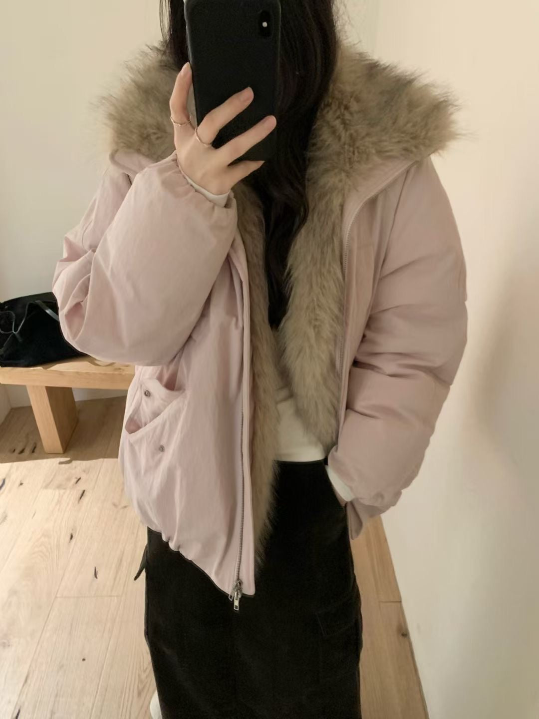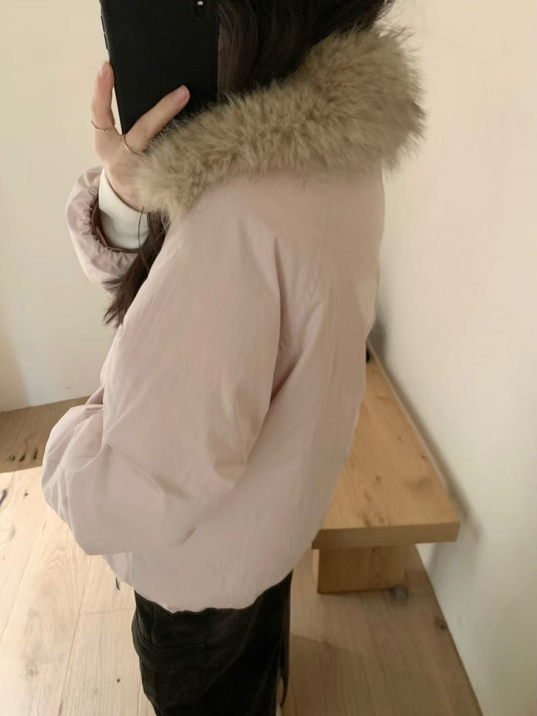 Faux fur trim down jacket