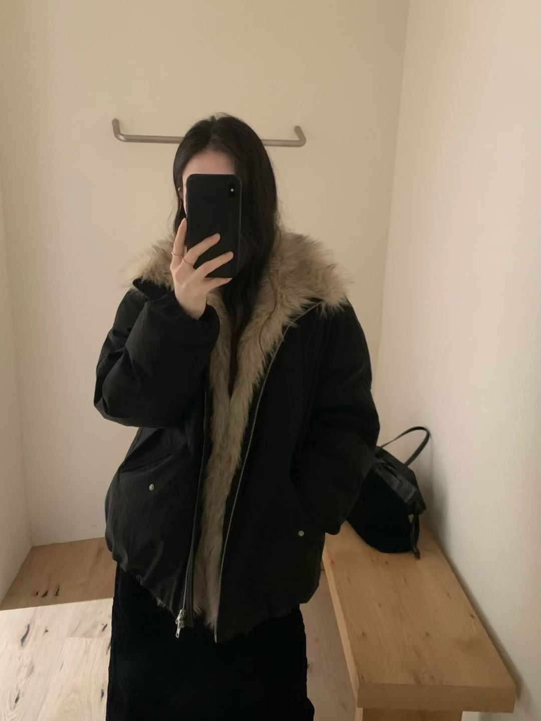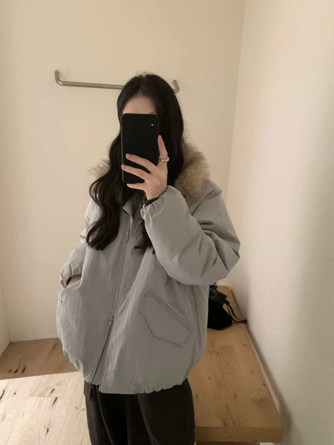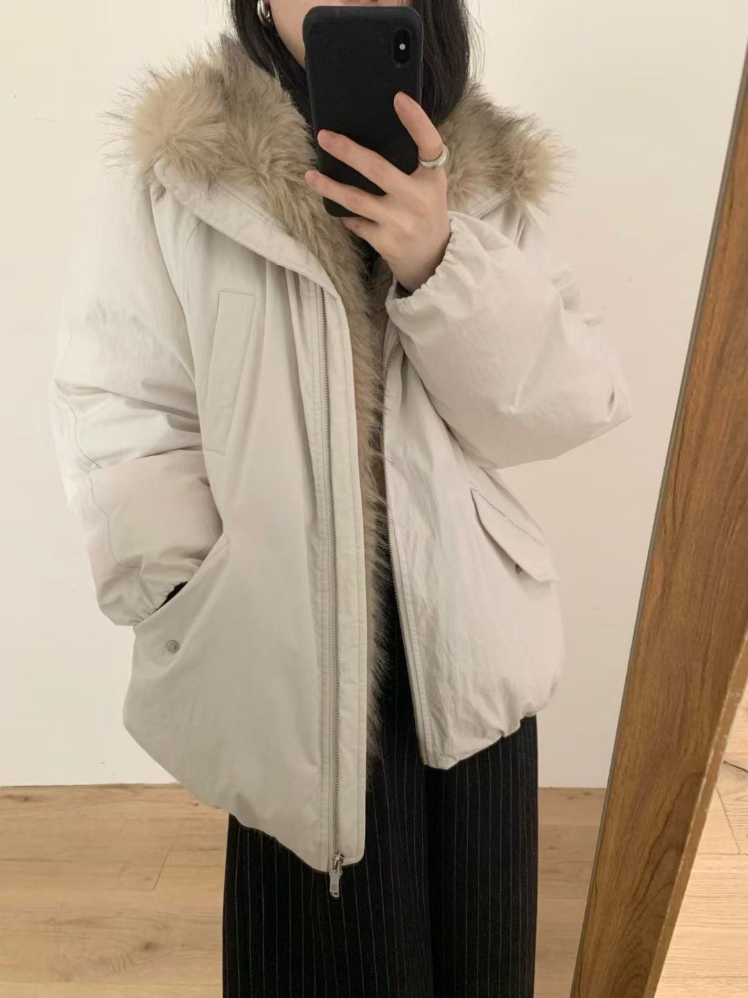 Faux fur trim down jacket