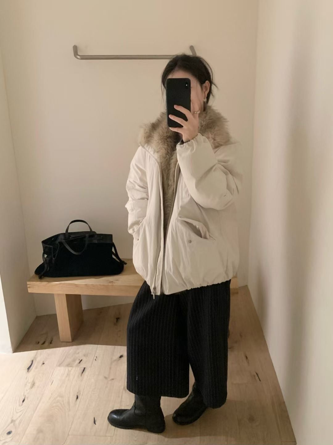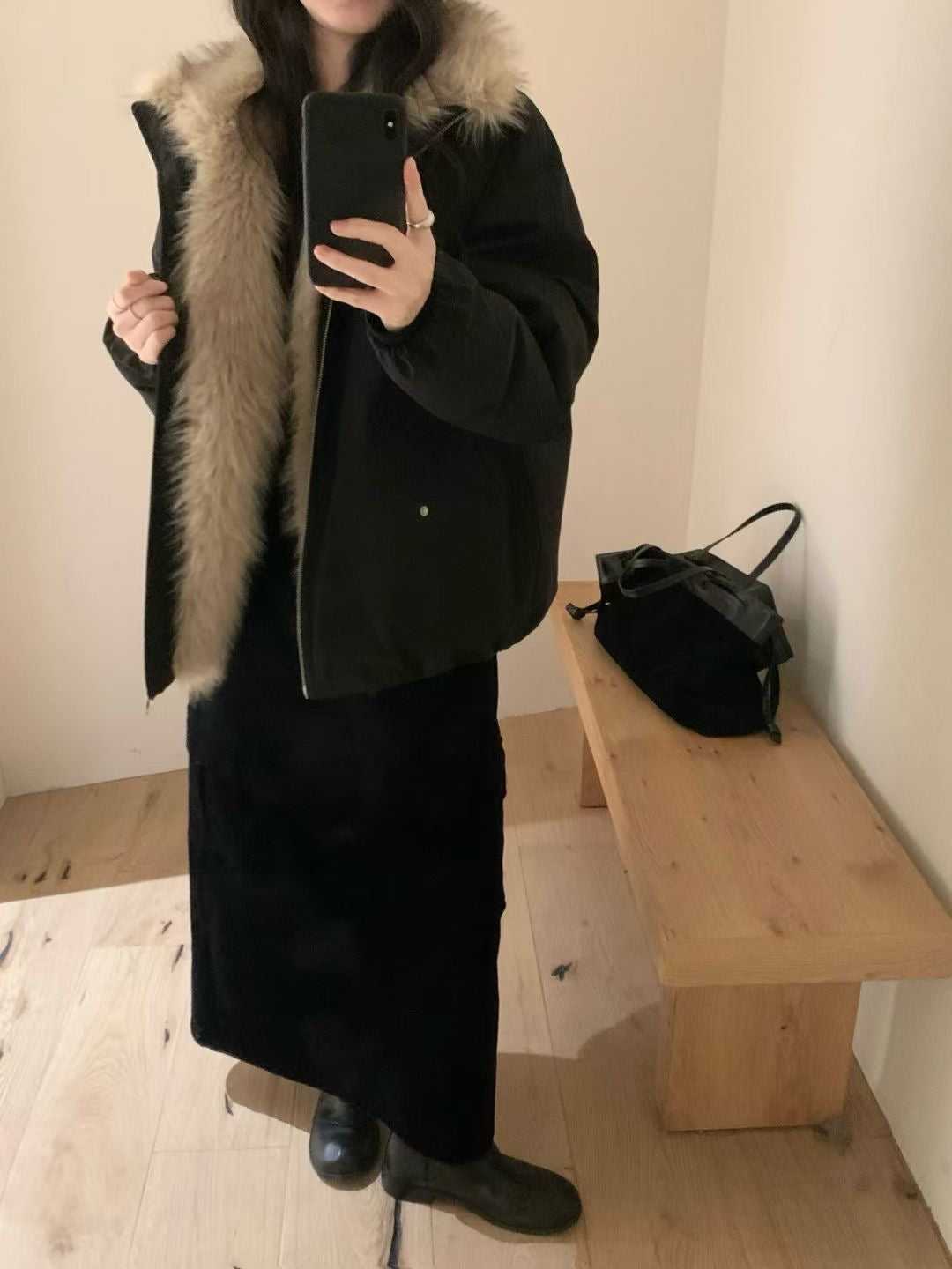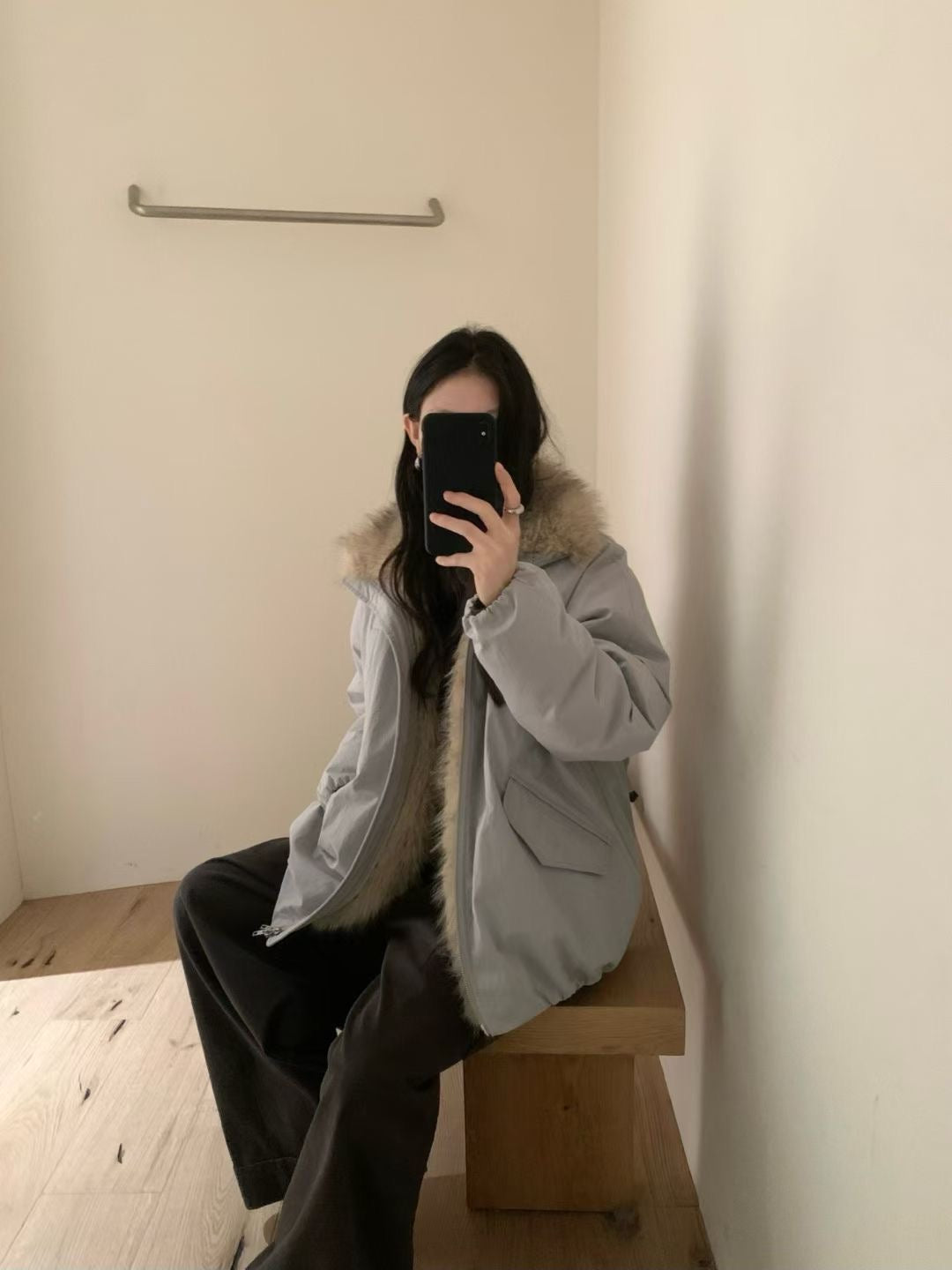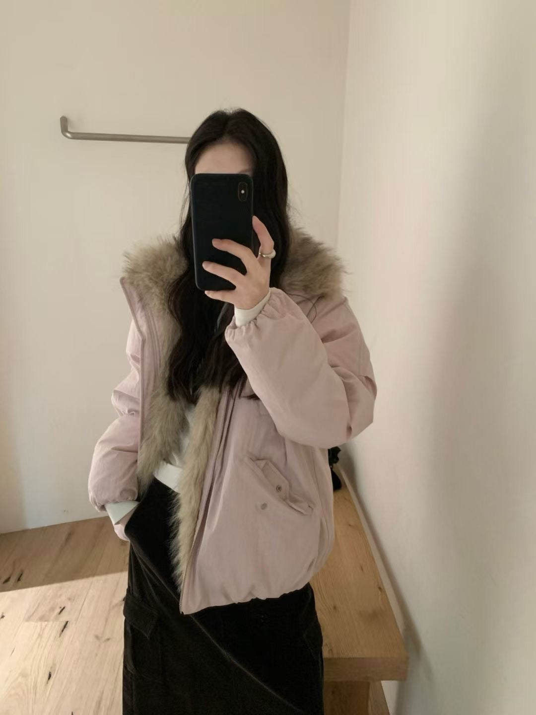 Faux fur trim down jacket