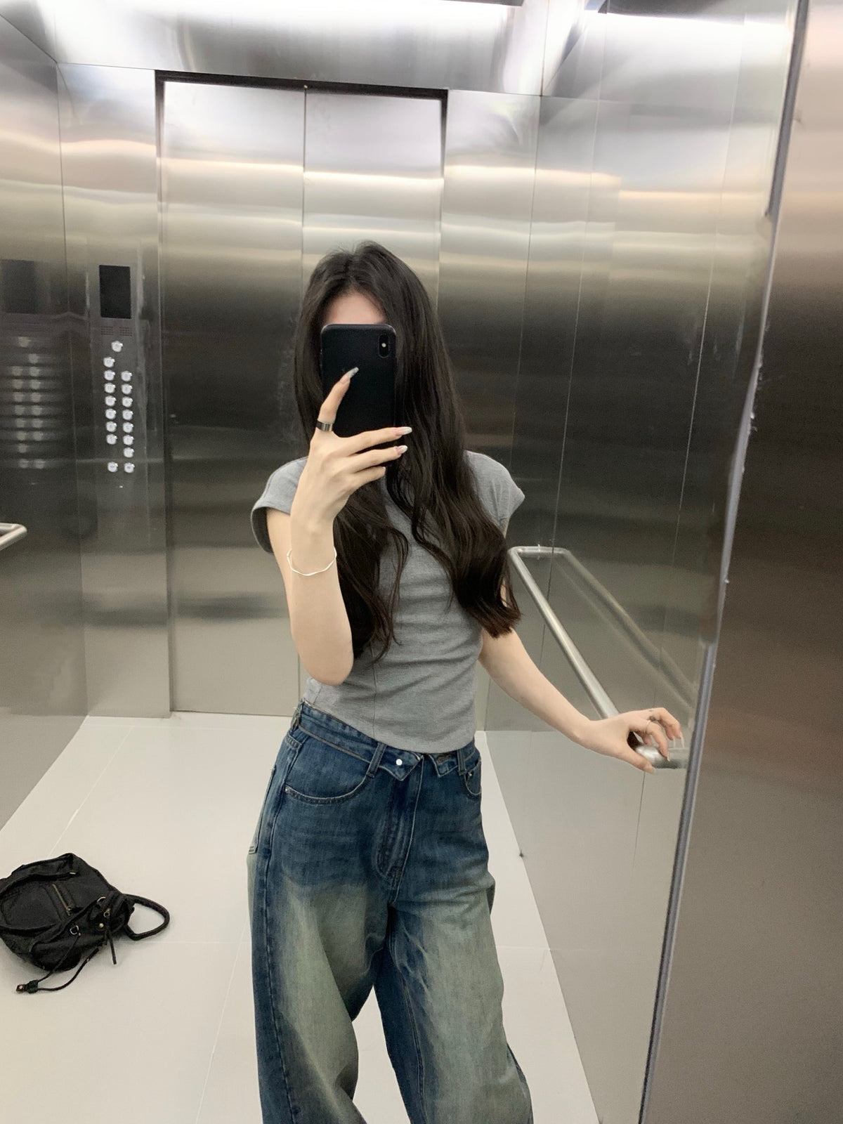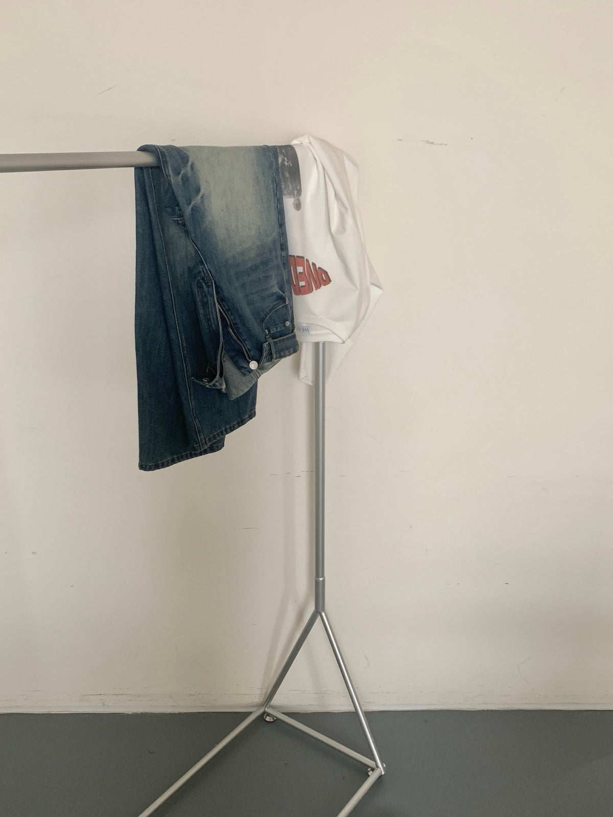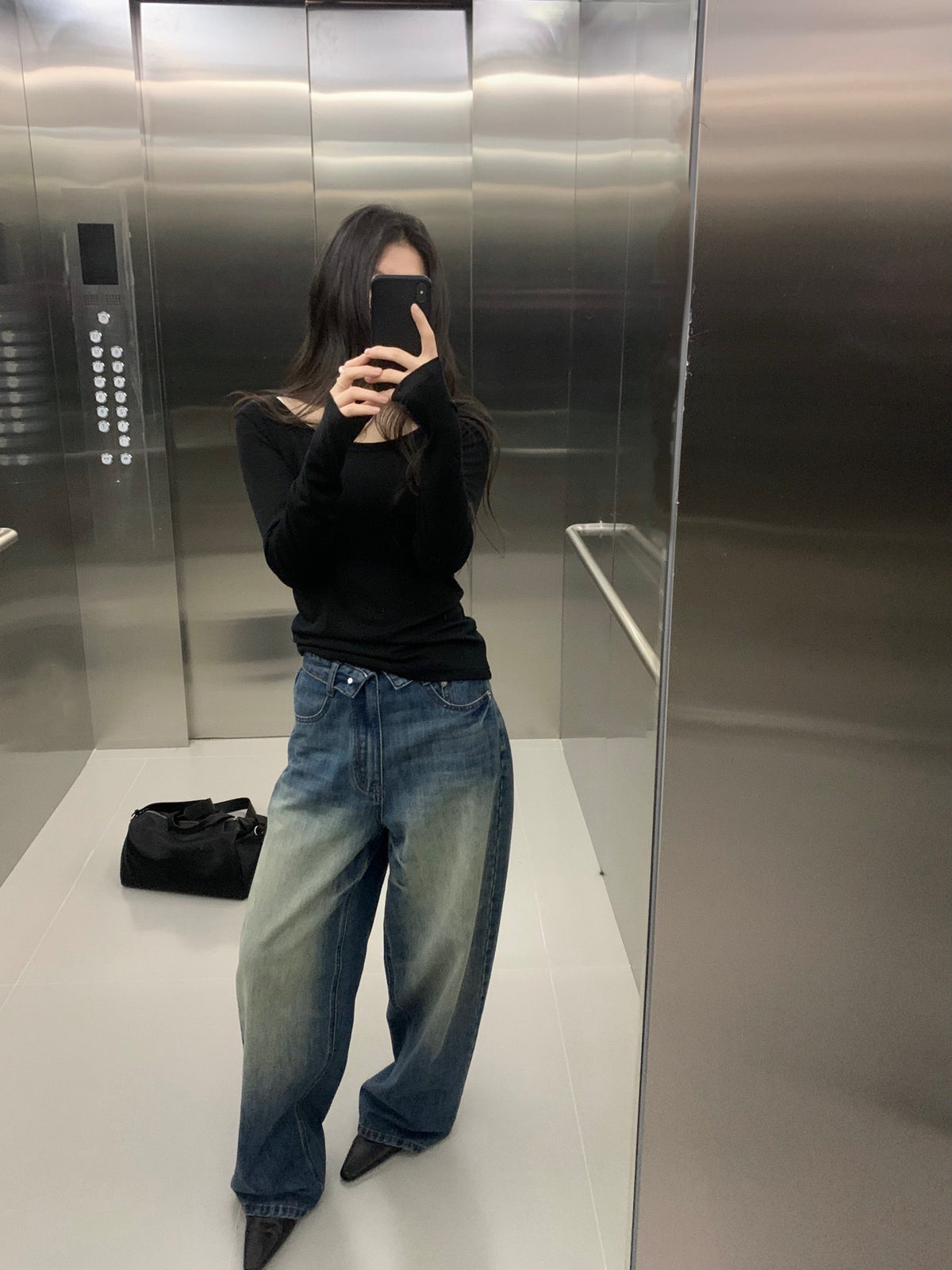 Folded waist washed jeans